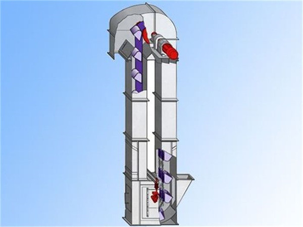 斗式提升機由料斗、驅動裝置、頂部和底部滾筒 (或鏈輪)、膠帶 (或牽引鏈條)、張緊裝置和機殼等組成。